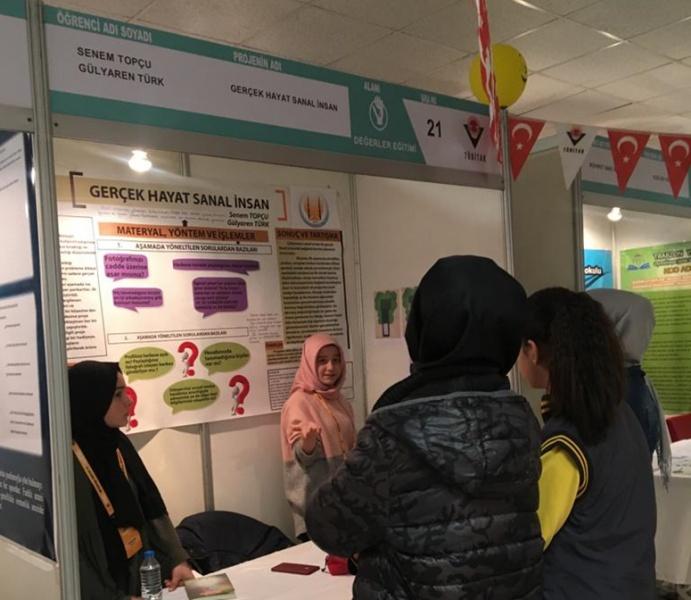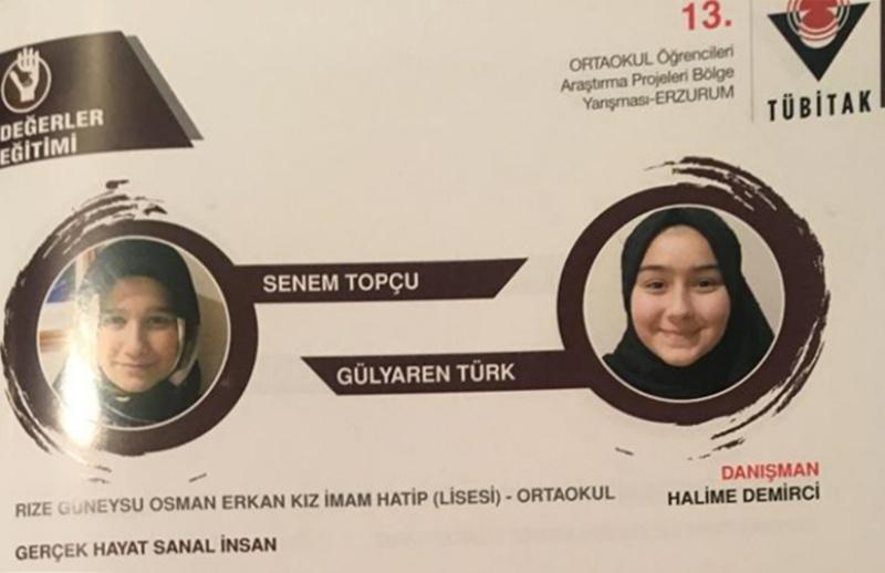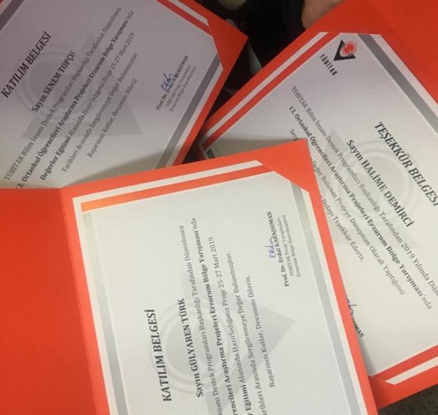 Öğretmenimiz Halime DEMİRCİ rehberliğinde, öğrencilerimiz Senem TOPÇU ve Gülyaren TÜRK, 13. TÜBİTAK ortaokul projeleri yarışmasına katılıp, 10 ilden seçilip dereceye giren proje sahipleri arasına katılarak, projelerini Erzurum Bölge Sergisi sırasında sergiledi.